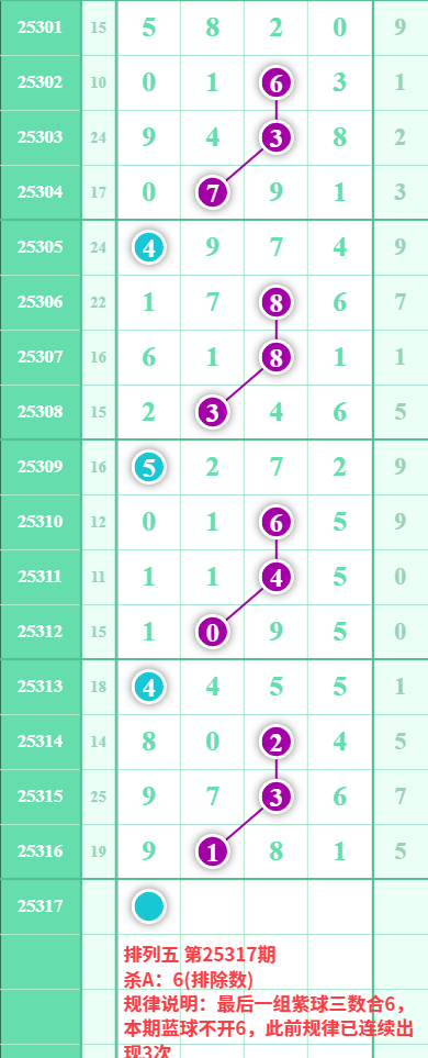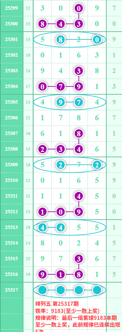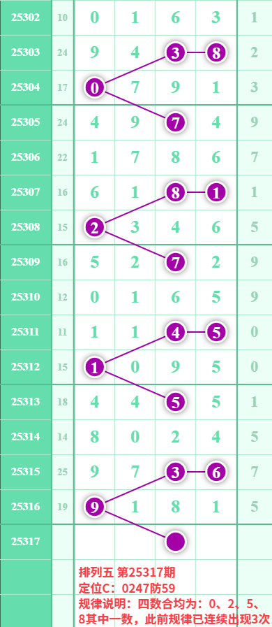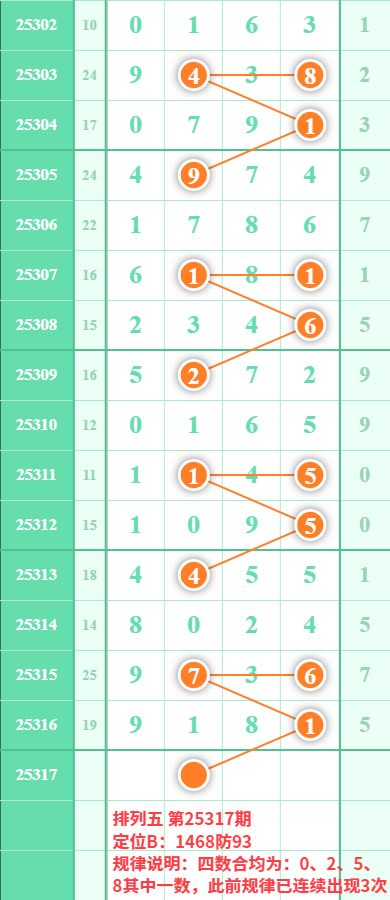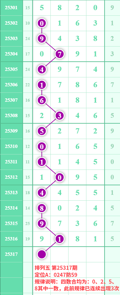 排列五25317期数据:
